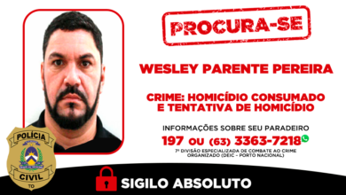 Hiago Muniz/Governo do Tocantins A Polícia Civil do Tocantins está à procura de Wesley Parente Pereira, 42 anos, investigado pelo…
