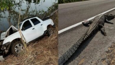 Jacaré-açu de grande porte morre atropelado na BR-242 em Formoso do Araguaia