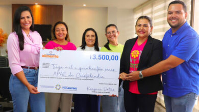 Camila Mitye/Governo do Tocantins A primeira-dama e secretária de Participações Sociais, Karynne Sotero, entregou nessa terça-feira, 15, cheques simbólicos às…