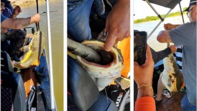 Pescadores salvam peixe após tentativa fracassada de devorar iguana no Rio Araguaia