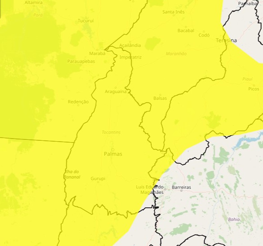 Alerta amarelo de chuvas intensas para quase todo o Tocantins — Foto: Reprodução/Inmet;