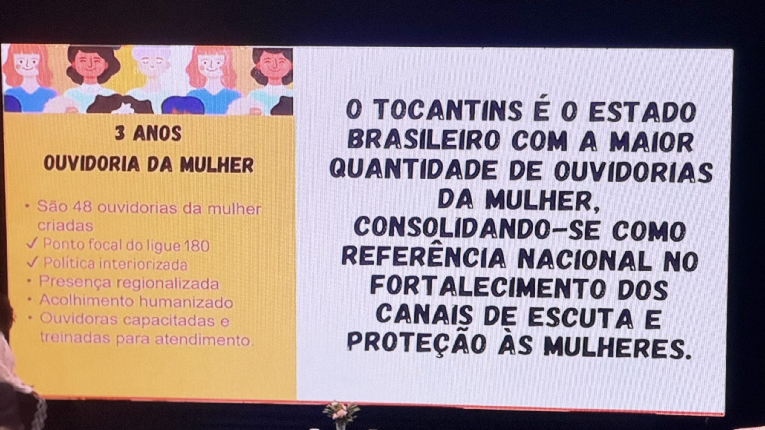 Foto do telão do ministério das mulheres – Foto: Kenar Lima/Governo do Tocantins;