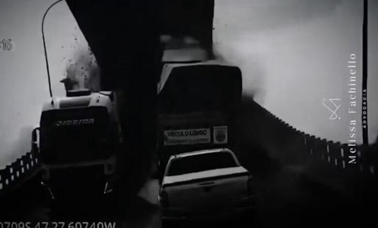 Imagens divulgadas nesta quarta-feira (18) pela advogada Mellissa Fachinello mostram o momento exato do desabamento da ponte Juscelino Kubitschek, registrado de dentro da cabine de um caminhão. A estrutura, que ligava o Tocantins ao Maranhão pela TO-226, colapsou no dia 22 de dezembro de 2024. Uma nova ponte foi inaugurada em dezembro de 2025, um ano após a tragédia.