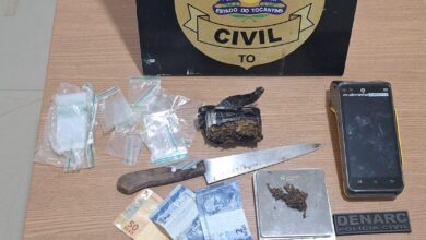 A Polícia Militar prendeu o homem de 25 anos, que foi encaminhado à 12ª Central de Atendimento da Polícia Civil, onde foi autuado em flagrante por tráfico de drogas, homicídio consumado e quatro tentativas de homicídio. Durante buscas em sua residência, foram encontradas porções de maconha e cocaína. O suspeito foi levado para a Unidade Penal Regional de Gurupi, onde permanece à disposição da Justiça.