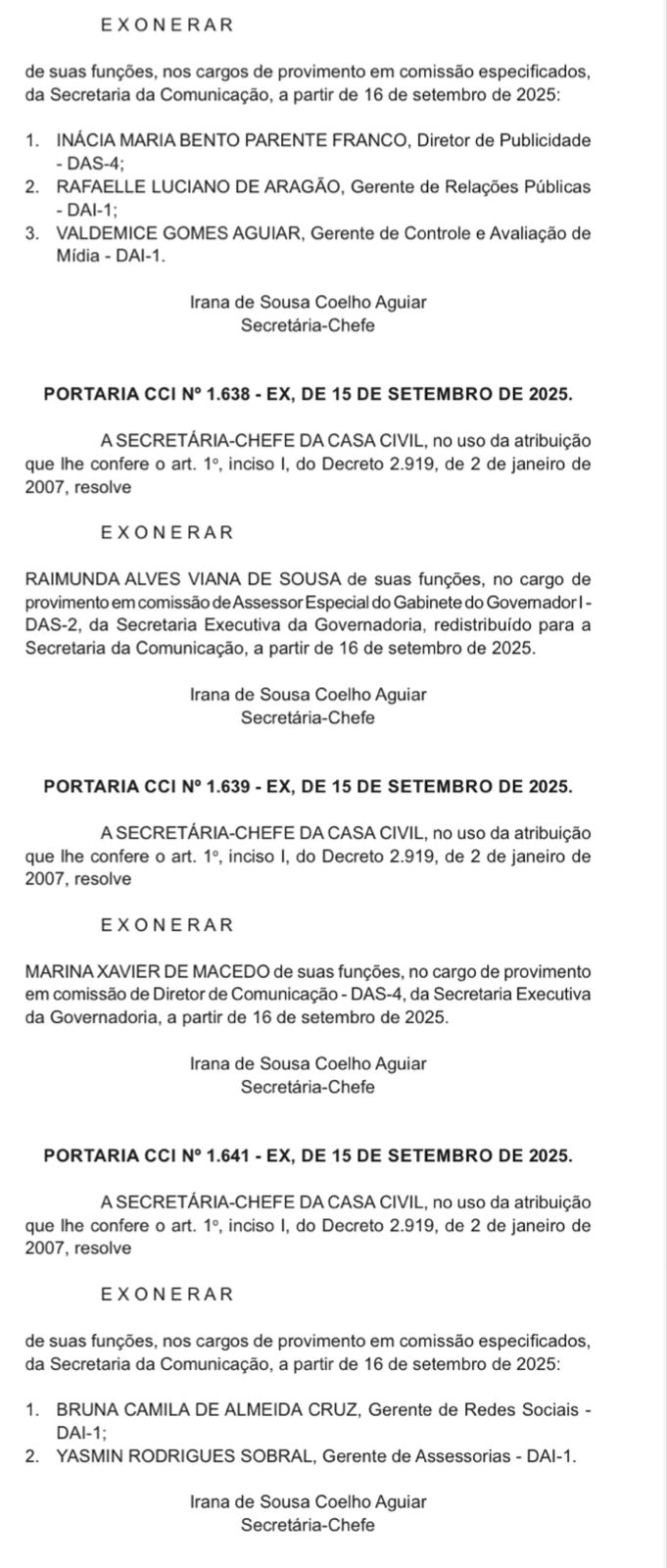 Apesar das mudanças, a secretária titular da Secom, Luiza Rocha Pinheiro, segue no comando da pasta. No entanto, sete integrantes do corpo diretivo foram oficialmente dispensados de suas funções.