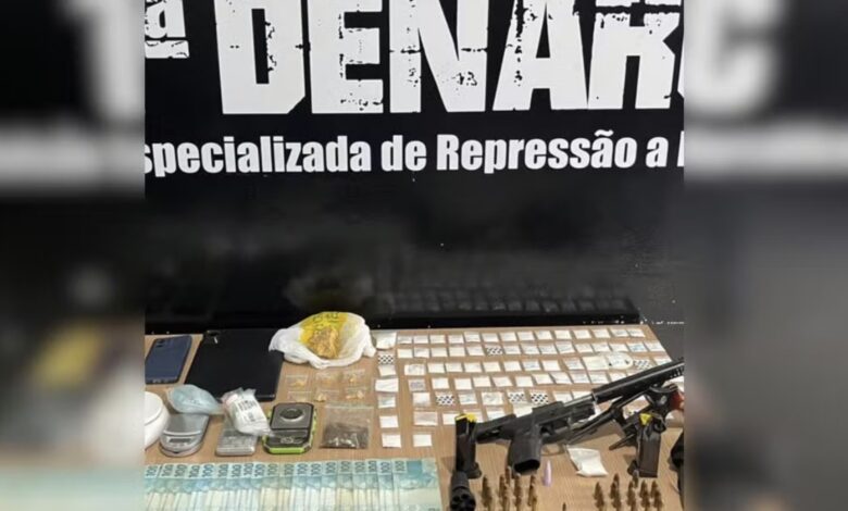 No local, foram apreendidas porções de cocaína, crack e maconha, além de um revólver calibre 38 municiado, uma pistola calibre 9 mm também municiada e um supressor de ruído. A equipe policial recolheu ainda R$ 3 mil em espécie, uma balança de precisão, um veículo supostamente utilizado na prática criminosa e duas motocicletas.