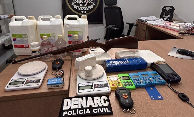 Na residência, os policiais apreenderam mais de 3kg de cocaína e quase 1kg de maconha, além de balança de precisão, máquinas de cartão e um rifle calibre 22 e munições de igual calibre. Já na chácara, os traficantes mantinham um pequeno laboratório. “Lá encontramos diversos insumos bioquímicos utilizados para processar a droga. Na prática, aumentavam a quantidade de droga para então comercializar na cidade”, destacou.
