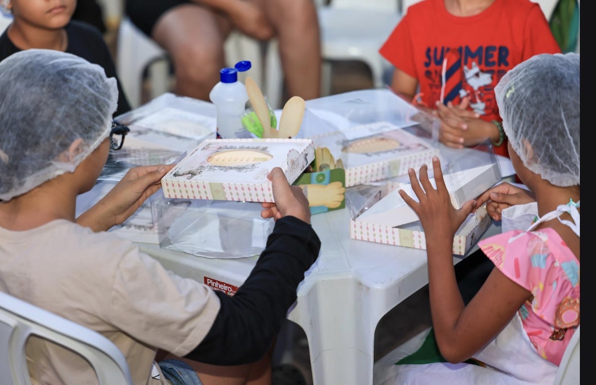 A expectativa cresceu com o sorteio de 20 crianças para a Oficina de Ovos de Páscoa. Com entusiasmo, os pequenos colocaram a mão na massa para confeccionar seus próprios doces, em uma experiência que uniu aprendizado e diversão. Entre os participantes, Laura Ribeiro, de 6 anos, acompanhada pela mãe, aguardava ansiosa pela atividade. “Vou fazer um ovo bem bonito e gostoso”, disse.
