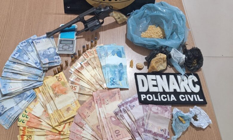 Uma vez contido, os policiais revistaram a residência e encontraram porções de maconha em cima da geladeira, um revólver calibre 38 embaixo do colchão, munições de igual calibre e dinheiro em espécie.