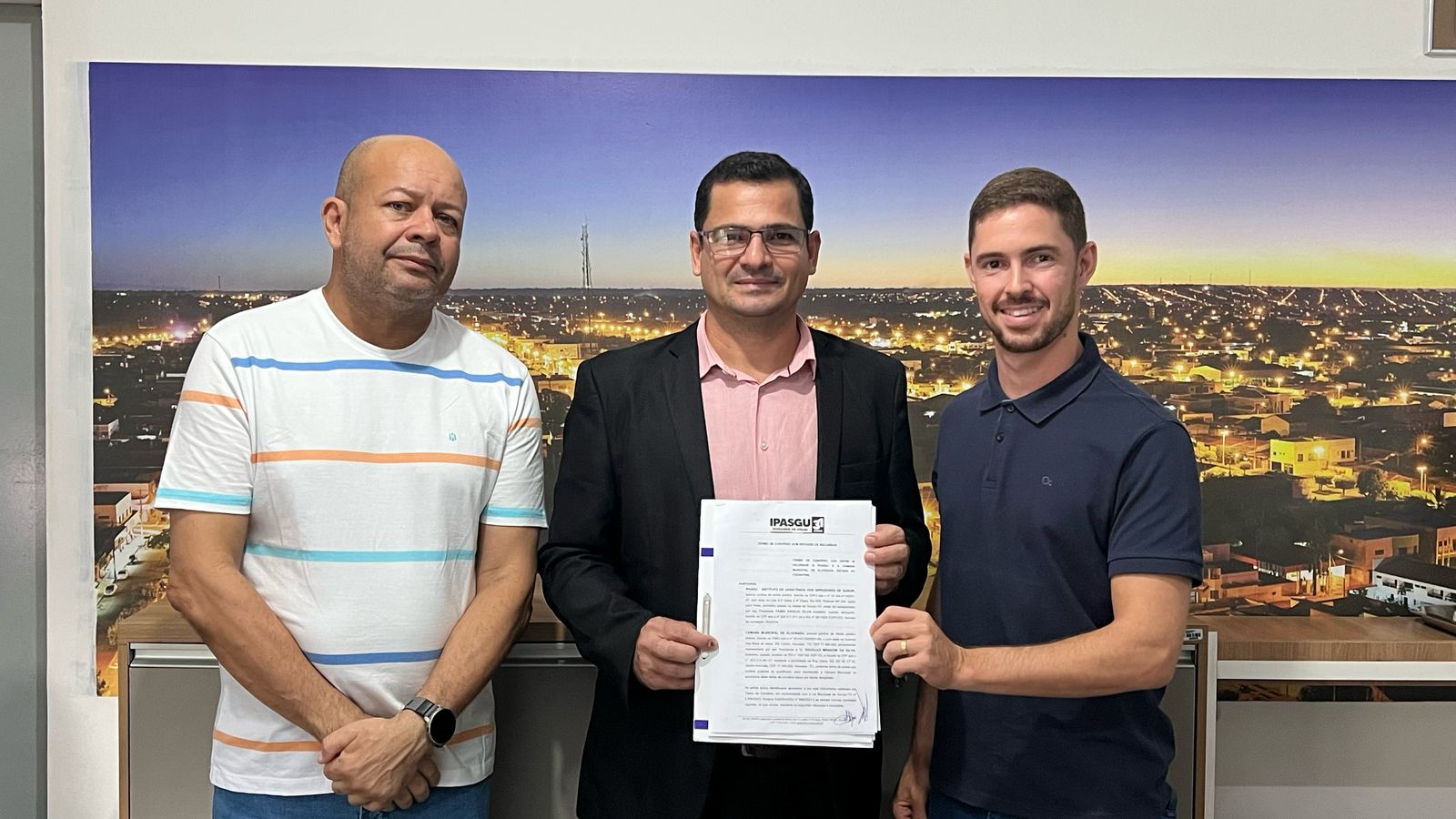 O Instituto de Assistência dos Servidores Municipais de Gurupi (IPASGU) segue ampliando sua atuação e conquistando novos parceiros. Na manhã desta quarta-feira, 02, a Câmara Municipal de Alvorada aderiu ao plano ao assinar o convênio com a Prefeitura de Gurupi. A solenidade de assinatura ocorreu no gabinete da prefeita Josi Nunes e contou com a presença do presidente do IPASGU, Fábio Araújo, e do presidente da Câmara Municipal de Alvorada, vereador Douglas Mengoni.