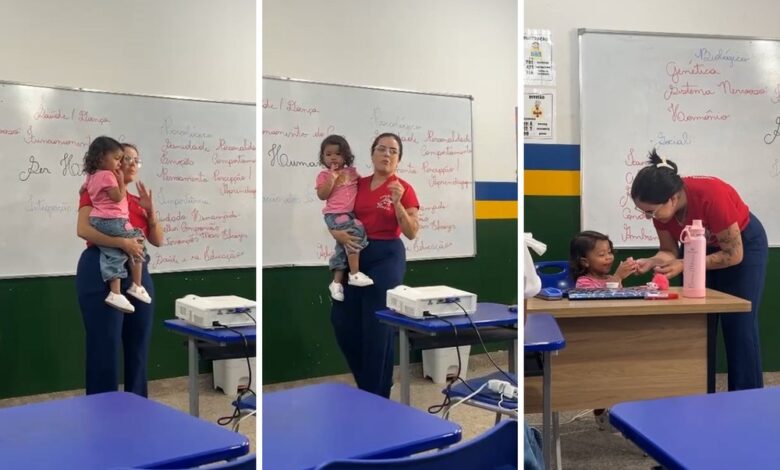 Professora acolhe filha de aluna em sala de aula e gesto viraliza no Tocantins
