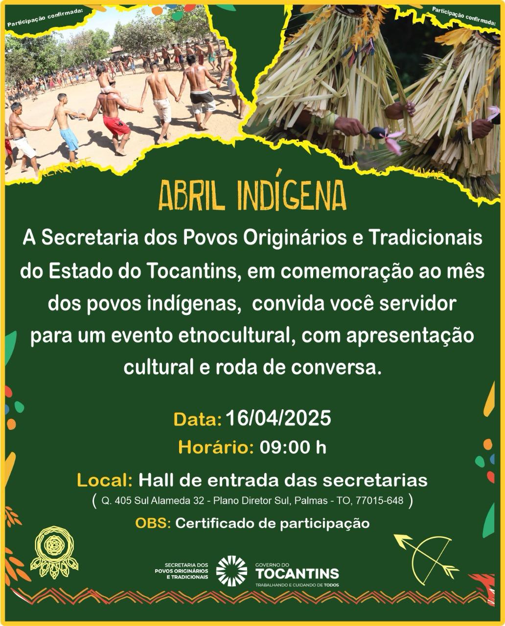 Convite para o evento do Abril Indígena – Foto: Ascom/Governo do Tocantins;